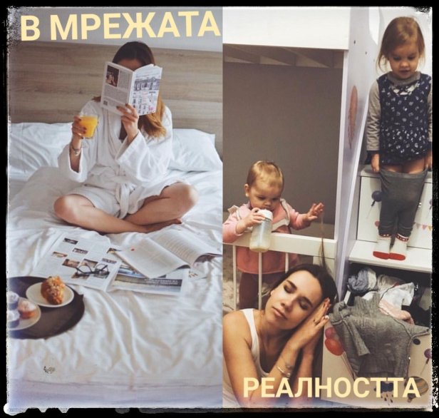 В днешната информационна ера всички сме наясно, че социалните медии са нагласени. Всеки много внимателно подбира, какво да споделя в мрежата, подрежда обектите по определен начин, наглася светлината, скрива от кадър разпилените опаковки, усмихва се театрално, прави достатъчно на брой кадъра, за да може после да избира и да успее да заблуди наблюдателя, че всичко е перманентно перфектно. Но … не е. И тогава се изправят очакването, срещу реалността.