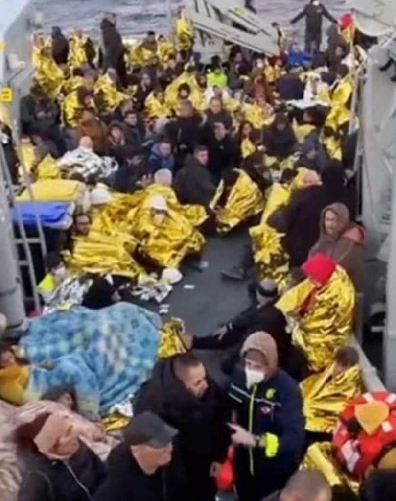 На всеки дадоха по едно пликче, вътре със станиолено покривало и ни накараха да седнем на земята на самата палуба. Катера се пълнеше с хора. Започваха да се търсят колеги. Викаха нечии имена. Започнаха да обикалят около нас и да издирват свои познати. Имаше налягали по палубата, които явно трудно са преживяли клатушкането в спасителната лодка. Изнесоха на ръце един от спасените.