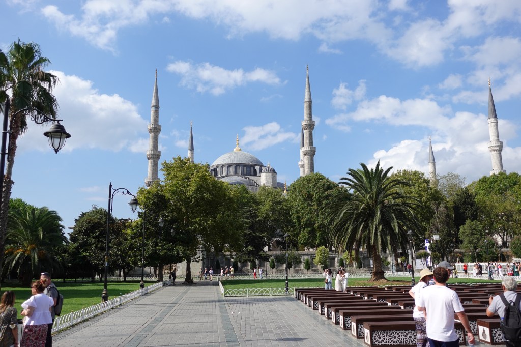 Нямаше как да пропуснем и Джамията Султан Ахмед, построена през XVII век. Заради своите цветове – синьо, зелено и бяло, е известна като Синята джамия. Тя е една от двете в света, които имат 6 минарета. Според легендата султанът пожелал минаретата да са златни „алтън“ на турски, но архитектът разбрал „алтъ“, което значело шест – така те вместо четири, както е прието, станали шест, а той загубил главата си.
