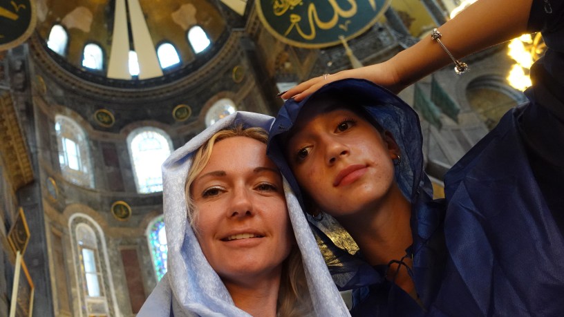 Влязохме в Голямата Джамия „Света София“ или „Църква на светата Премъдрост Божия“- дълго време християнска катедрала, по-късно сред главните джамии на Константинопол, а днес продължава да работи като джамия. Там зад бели платна видяхме полузакрита иконата на света Богородица.