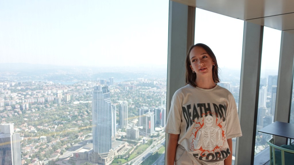 Качихме се на небостъргача Сапфир – “Покривът на Истанбул”, цели 238 метра, а асансьорът до покрива се издига с 18-20 км/ч. От древността се пренесохме в съвремието, където се разкри 360 градусова панорамна гледка към целия Истанбул